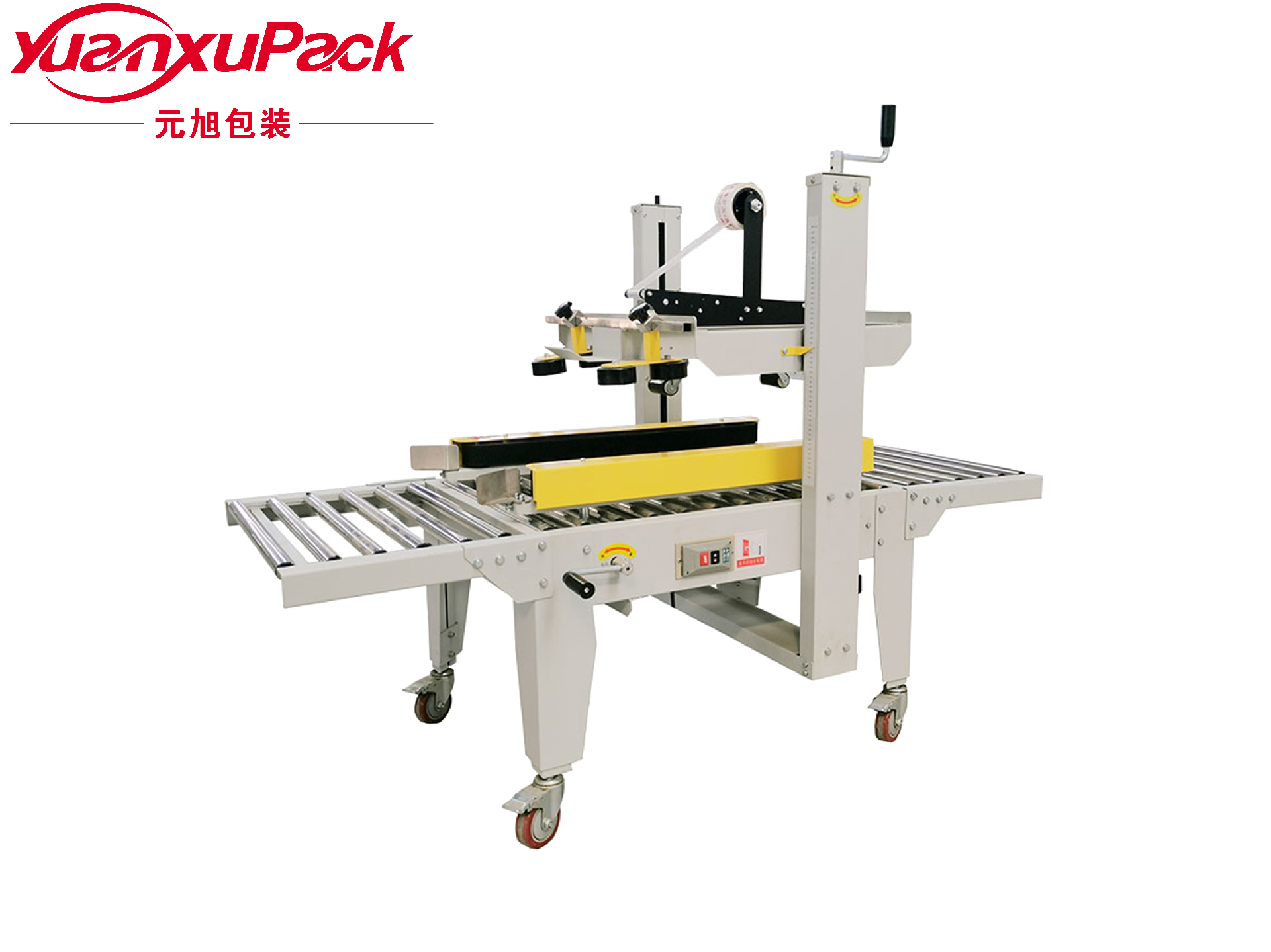 可使用不同规格的纸箱。纸箱上盖人工折入,平稳顺畅,封箱作业一气呵成,美观省力,可配合自动化包装系统使用。新型贴带器,不用鼓风机吹挺胶带,利用之压片装置,使胶带挺立不弯下而造成不能粘贴。 上下升可调整的纸箱尺寸可避免纸箱卡在上贴带器。 两侧皮带传动,主传动机构使用特殊培林座,高精密、 低噪音,增加皮带使用寿命。